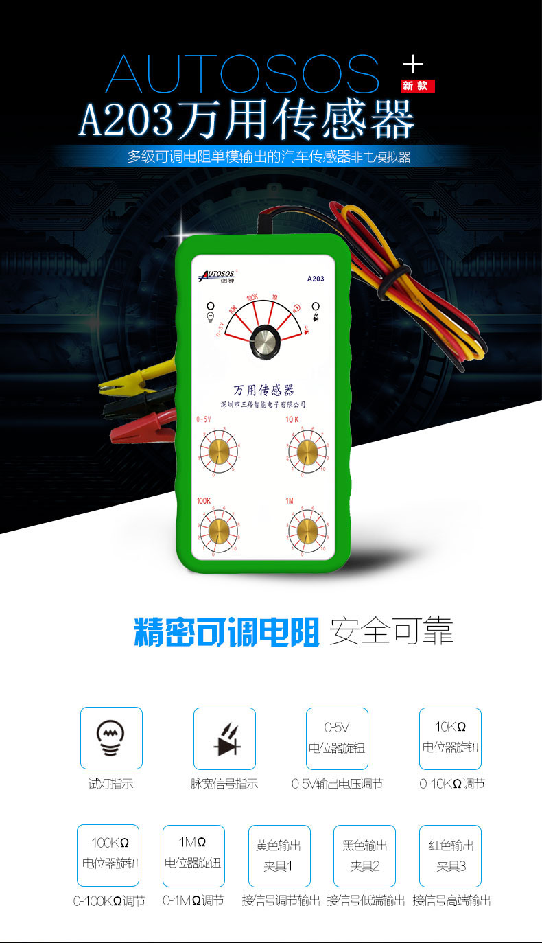 汽車電器 電路電阻 模擬器24v可調(diào)試可調(diào)電阻,修車?yán)鳎赡M排溫傳感器,液位傳感器,液溫傳感器,水溫傳感器,環(huán)境溫度傳感器,還可以模擬進(jìn)氣壓力傳感器,快速排查故障,模擬后處理系統(tǒng)噴射!可用于現(xiàn)場檢測儀的校準(zhǔn)和檢測,可作為實(shí)驗(yàn)室(鑒定室)的標(biāo)準(zhǔn)信號源,亦可作為綜合檢定裝置的信號發(fā)生器